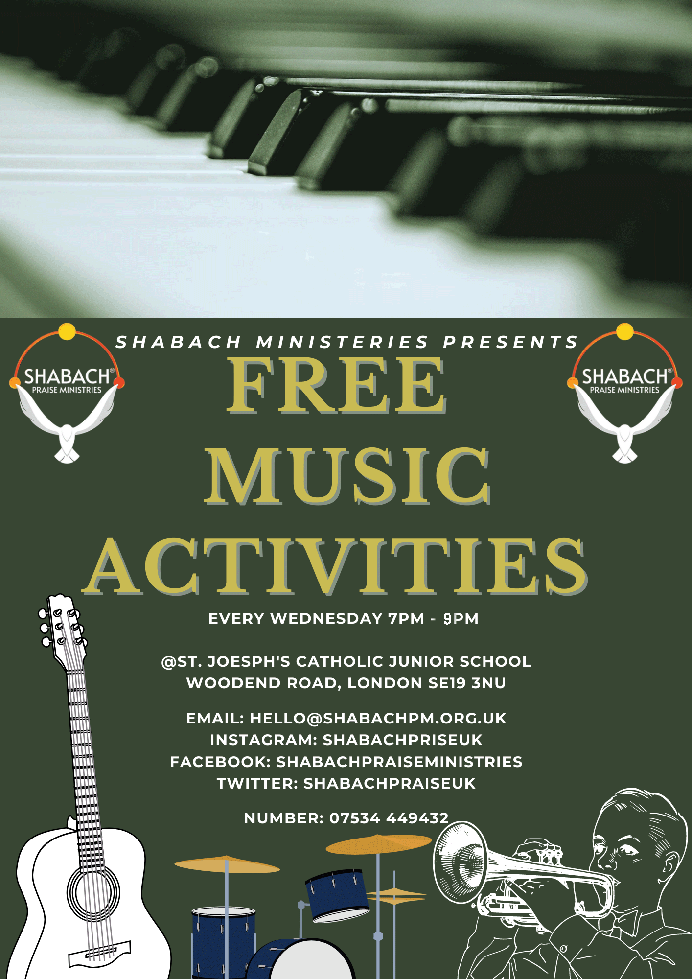 7pm-9pm - Musical Workshop for young people age 10-20yrs